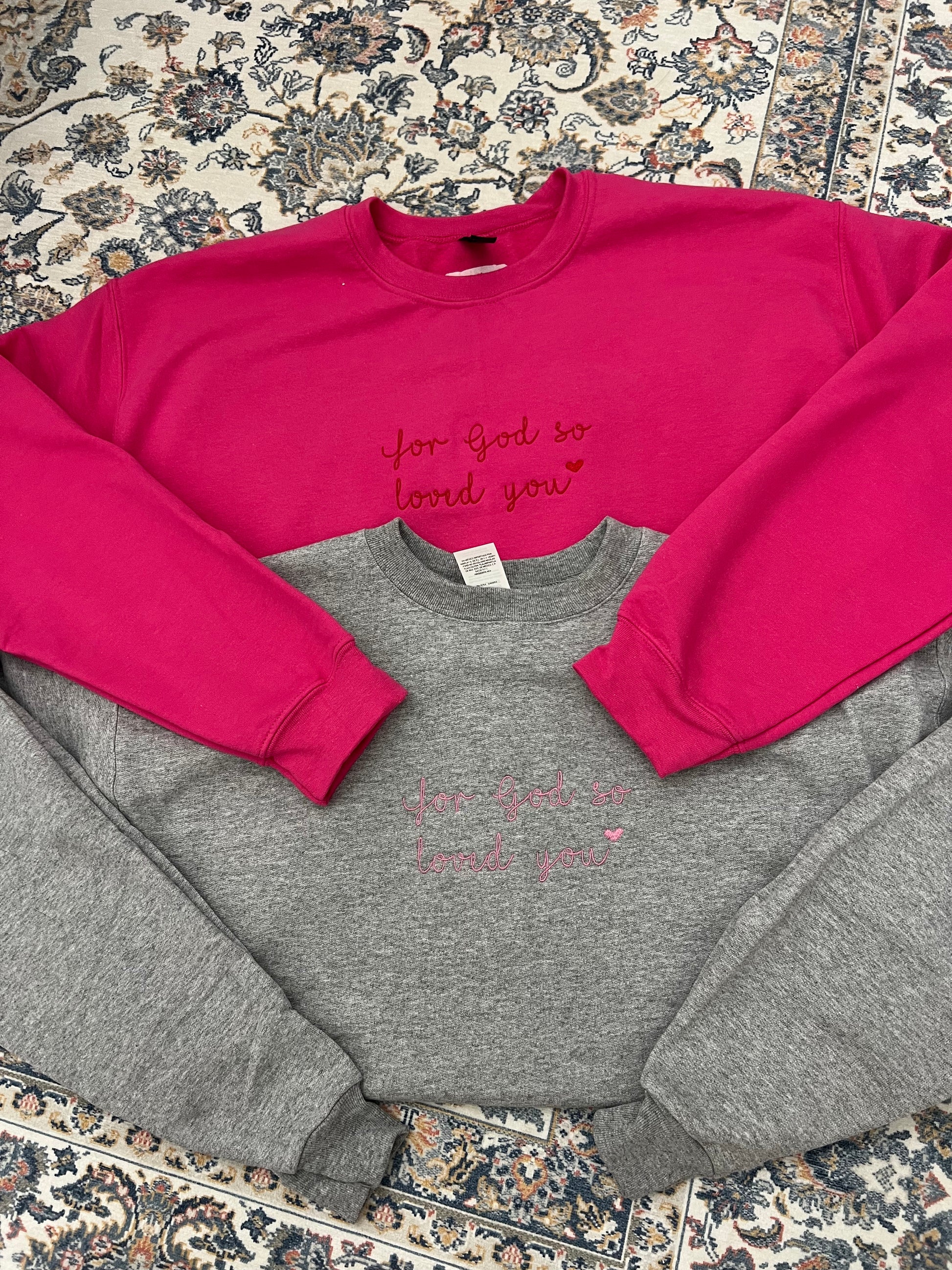 “For God so loved you” Embroidered pullover